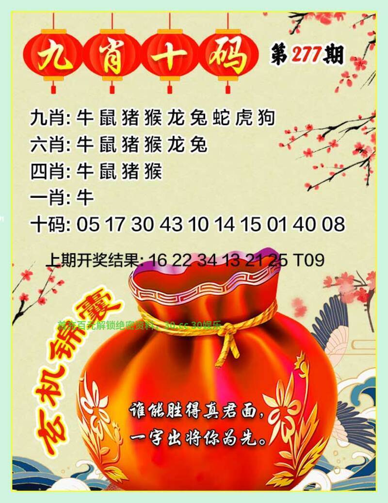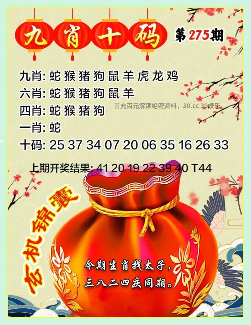 276期:✨ 【猴22.龙14.鼠30.羊23.鸡21】 |