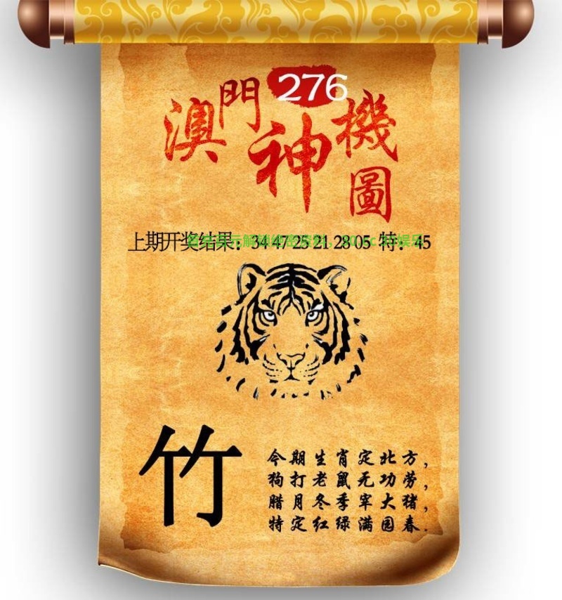 278期:✨四门中特✨「2345」开:虎28准 |