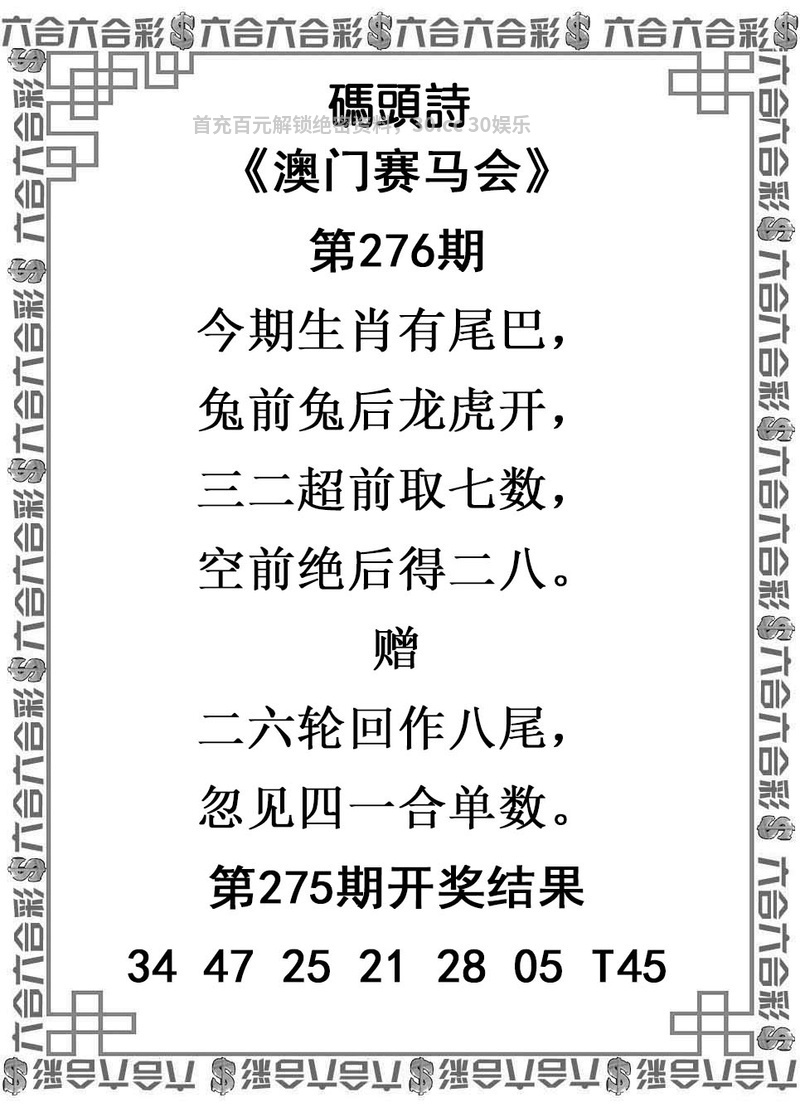 275期:稳中四肖:龙猴鸡羊 |