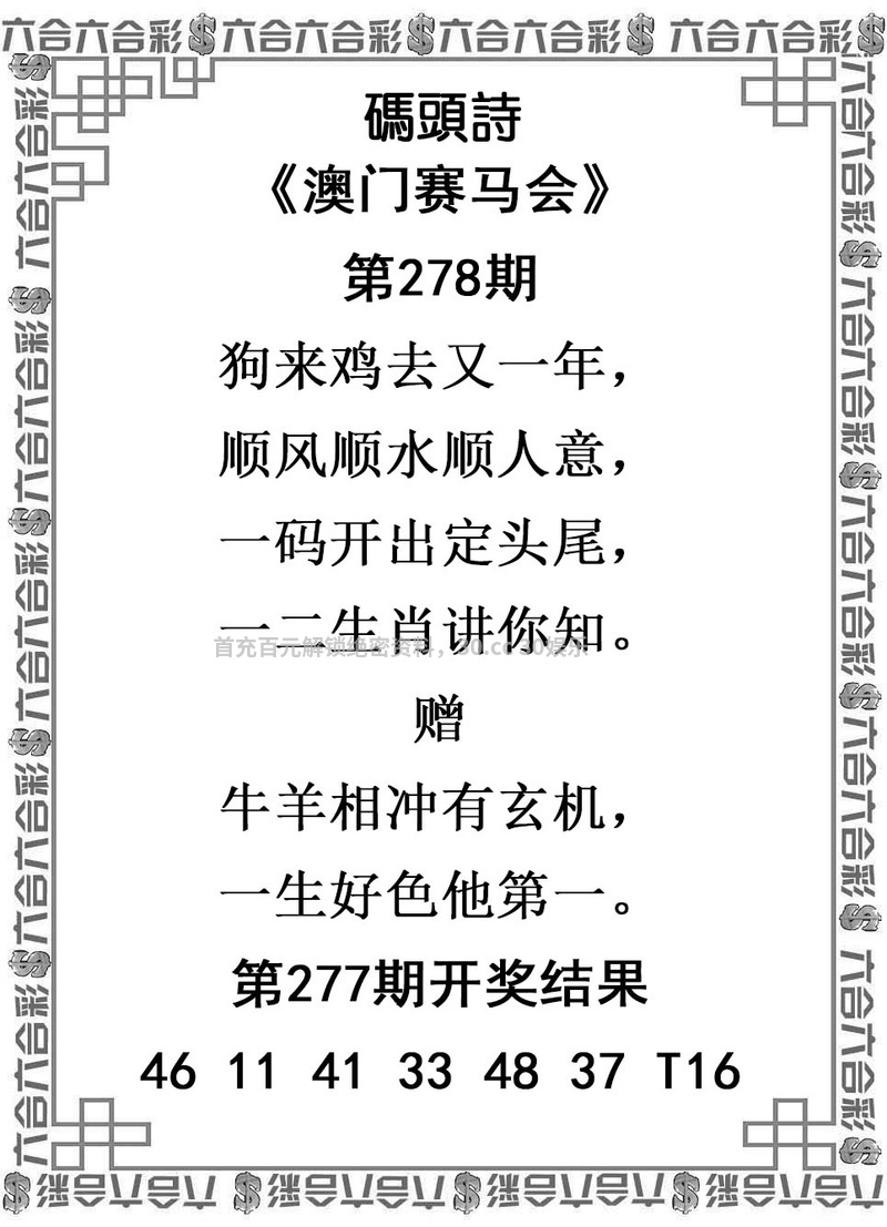 278期:✨ 【牛17.鸡09.狗20.猴46.羊23】 |